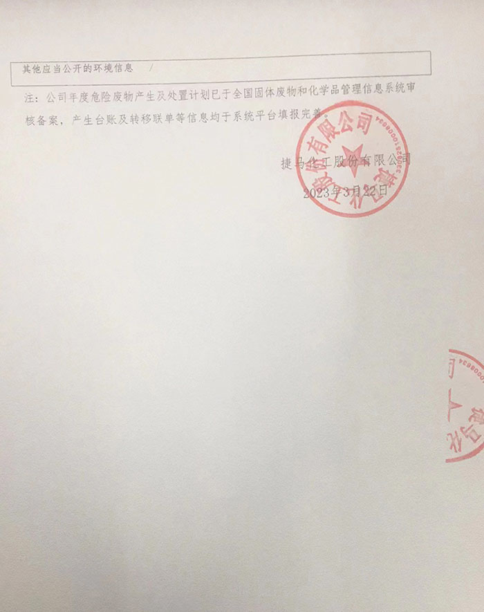 捷马化工股份有限公司强制清洁生产审核企业信息公示详情箐查看附件: